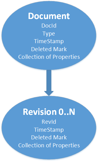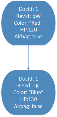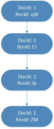 Whenever a new revision of a document is stored in the database a new revision identifier is created with it. So after several updates have taken place, a revision chain, like the following one, is forming.